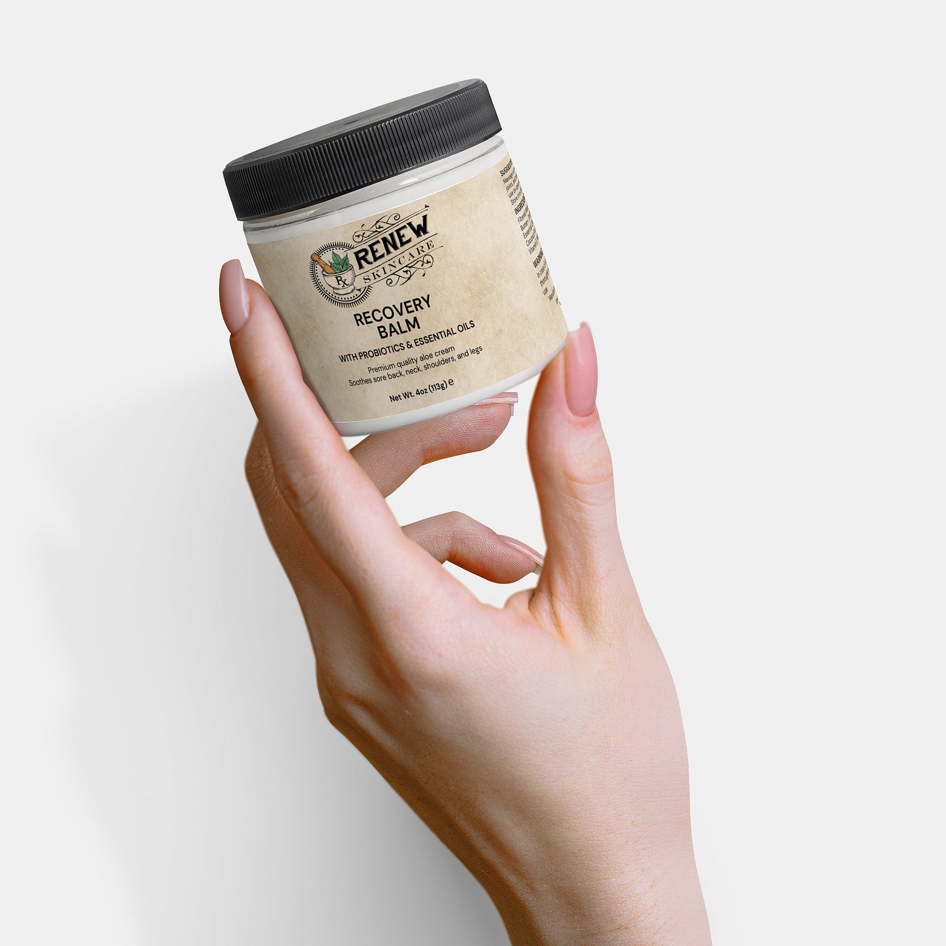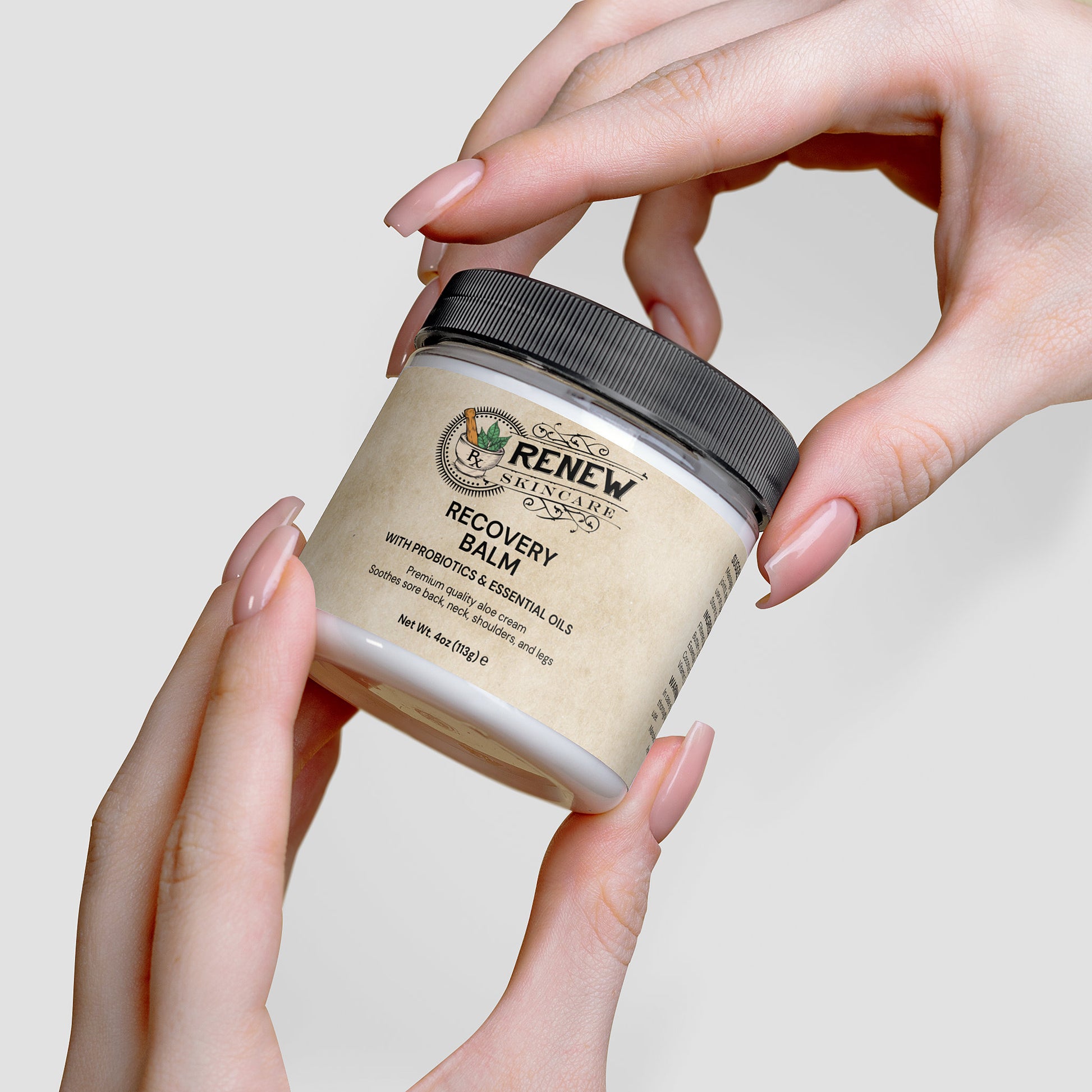 Experience the ultimate comfort with our specially formulated Recovery Cream—a premium cosmetic skincare solution that combines the soothing properties of aloe, grapeseed oil, and our essential oil blend to provide a silky, hydrating sensation for your skin.